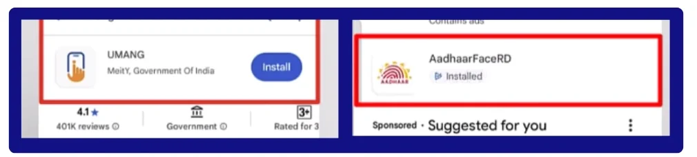 - Download Required Apps: Start by installing two essential apps—the UMANG app and the Aadhaar Face RD app. Both are free to download and easily available on the Google Play Store and Apple App Store.